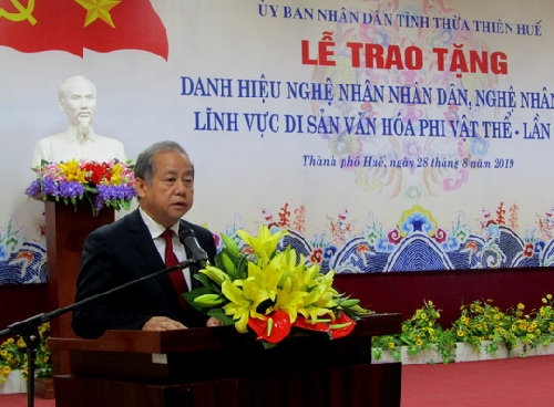 Sáng ngày 28/08, tại Ủy ban nhân dân tỉnh Thừa Thiên Huế đã diễn ra buổi lễ Trao tặng danh hiệu nghệ nhân nhân dân, Nghệ nhân ưu tú trên lĩnh vực văn hóa phi vật thể - lần thứ II. Đến dự có ông Bùi Thanh Hà - Phó Bí thứ thường trực Tỉnh ủy, Ông Phan Ngọc Thọ, Phó bí thư Tỉnh ủy, Chủ tịch Ủy ban nhân dân tỉnh thừa Thiên Huế, Trưởng đoàn Đại biểu Quốc hội tỉnh.