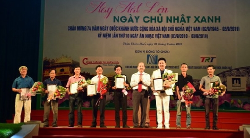 Tối ngày 03/09, UBND tỉnh Thừa Thiên Huế đã tổ chức Chương trình tổng kết, công diễn và trao giải thưởng cuộc thi sáng tác ca khúc hưởng ứng phong trào Ngày chủ nhật xanh.