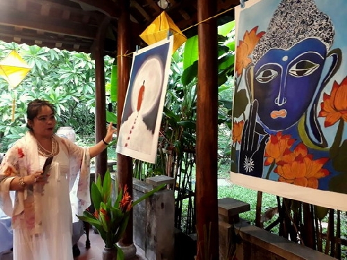 Chiều 4/9, tại Vườn Lan Thái (nhà vườn của TS. Thái Kim Lan), 120 Nguyễn Phúc Nguyên, TP. Huế, họa sĩ Summi Matzke, một họa sĩ người Đức gôc Việt đã tổ chức triển lãm tranh Vẽ Phật.