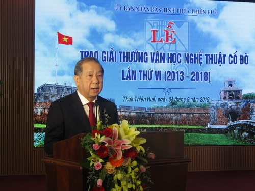 Sáng ngày 4/9, tại TP Huế, Ủy bạn nhân dân tỉnh Thừa Thiên Huế phối hợp với Liên hiệp các Hội Văn hoc nghệ thuật tỉnh Thừa Thiên Huế tổ chức Lễ trao tặng Giải thưởng Văn học Nghệ thuật Cố đô lần thứ VI.