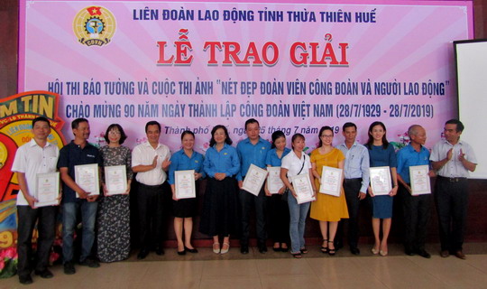Chiều 25/7, tại Trung tâm VHTT Tỉnh, Liên đoàn Lao động (LĐLĐ) tỉnhThừa Thiên Huế đã tổ chức trao giải cuộc thi ảnh “Nét đẹp Công đoàn và người lao động” và hội thi báo tường chào mừng kỷ niệm 90 năm Ngày thành lập Công đoàn Việt Nam (28/7/1929 - 28/7/2019).