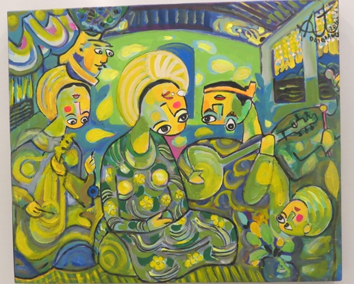 Bức “Ca Huế trên sông Hương”, một trong những tác phẩm ông Giang dành tặng Bảo tàng Mỹ thuật Huế. |