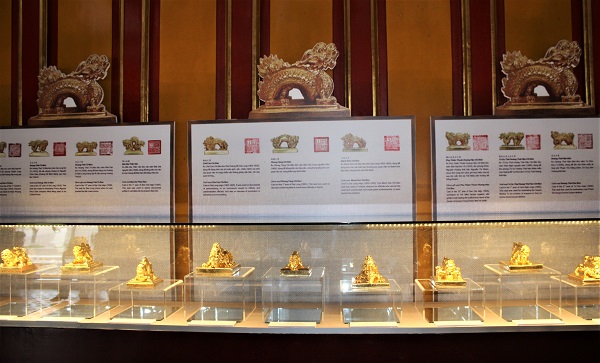 Triển lãm “Phiên bản Kim Ấn triều Nguyễn” trưng bày 32 chiếc ấn làm bằng gốm thếp vàng, được chế tác dựa trên từ các tiêu bản kim ấn triều Nguyễn lưu trữ tại Bảo tàng Lịch sử Việt Nam, trong đó có ấn Hoàng đế tôn thân chi bảo, ấn Sắc mệnh chi bảo, Tề gia chi bảo, và ấn của các hoàng thái hậu, Hoàng thái phi, Hoàng thái tử …v..v…- góp phần tái hiện một phần lịch sử triều Nguyễn từ câu chuyện của những nhân vật, những sự kiện gắn với Hoàng cung Huế một thời.