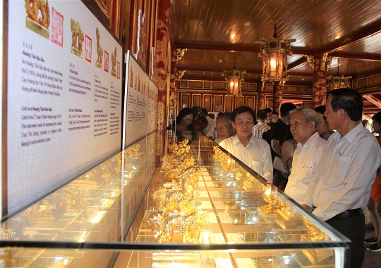 Chiều ngày 10/6, tại Lầu Ngũ Phụng - Ngọ Môn (Đại Nội - Huế), Trung tâm Bảo tồn Di tích Cố đô Huế phối hợp với Nghệ nhân nhân dân Trần Độ tổ chức khai mạc triển lãm “Phiên bản Kim Ấn triều Nguyễn”.