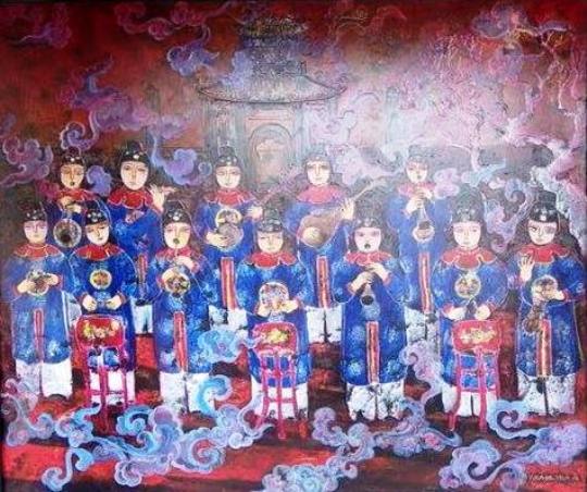 Sự kết hợp giữa các thực thể miêu tả là các ca công kết hợp với hình khối của các tượng khối đã như rồng, voi, ngựa cùng với các họa tiết mây hoa đã làm thành một bố cục chặt chẽ có sức liên tưởng. Bên cạnh đó, đáng chú ý là các tác phẩm Tiểu nhạc, Lục cúng hoa đăng, Lân mẫu xuất lân nhi, Hòa tấu. Ở đây, ngũ sắc Huế đã hòa quyện chấm phá trong các đường nét, chi tiết: nương theo các mảng miếng để làm nên những rung động thẩm mỹ.