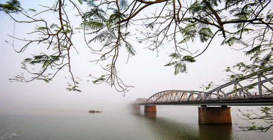 | Cầu Trường Tiền hơn 100 năm tuổi và buổi sáng tinh mơ trong màn sương mù mờ ảo |