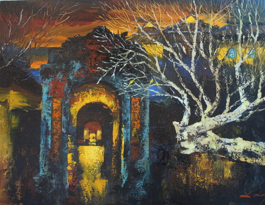 | Tác phẩm " Dấu xưa" của họa sĩ Lê Hữu Long |