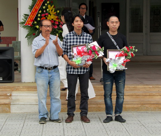 | Họa sĩ Đặng Mậu Tựu - Chi hội trưởng Chi hội Mỹ thuật Việt Nam tại Thừa Thiên Huế trao giải thưởng cho các tác giả |