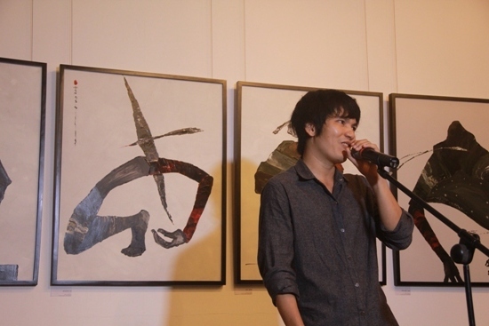 | Nhà văn - Họa sĩ Lê Minh Phong phát biểu tại triển lãm |