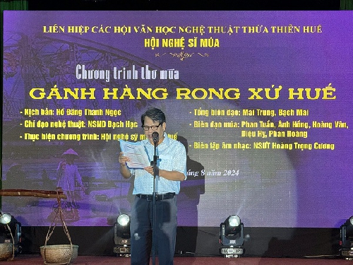 Tối 26/8, tại Nhà văn hóa Lao động tỉnh Thừa Thiên Huế, Liên hiệp các Hội Văn học Nghệ thuật Thừa Thiên Huế đã phối hợp với Hội Nghệ sĩ Múa Thừa Thiên Huế tổ chức chương trình thơ múa "Gánh hàng rong xứ Huế".