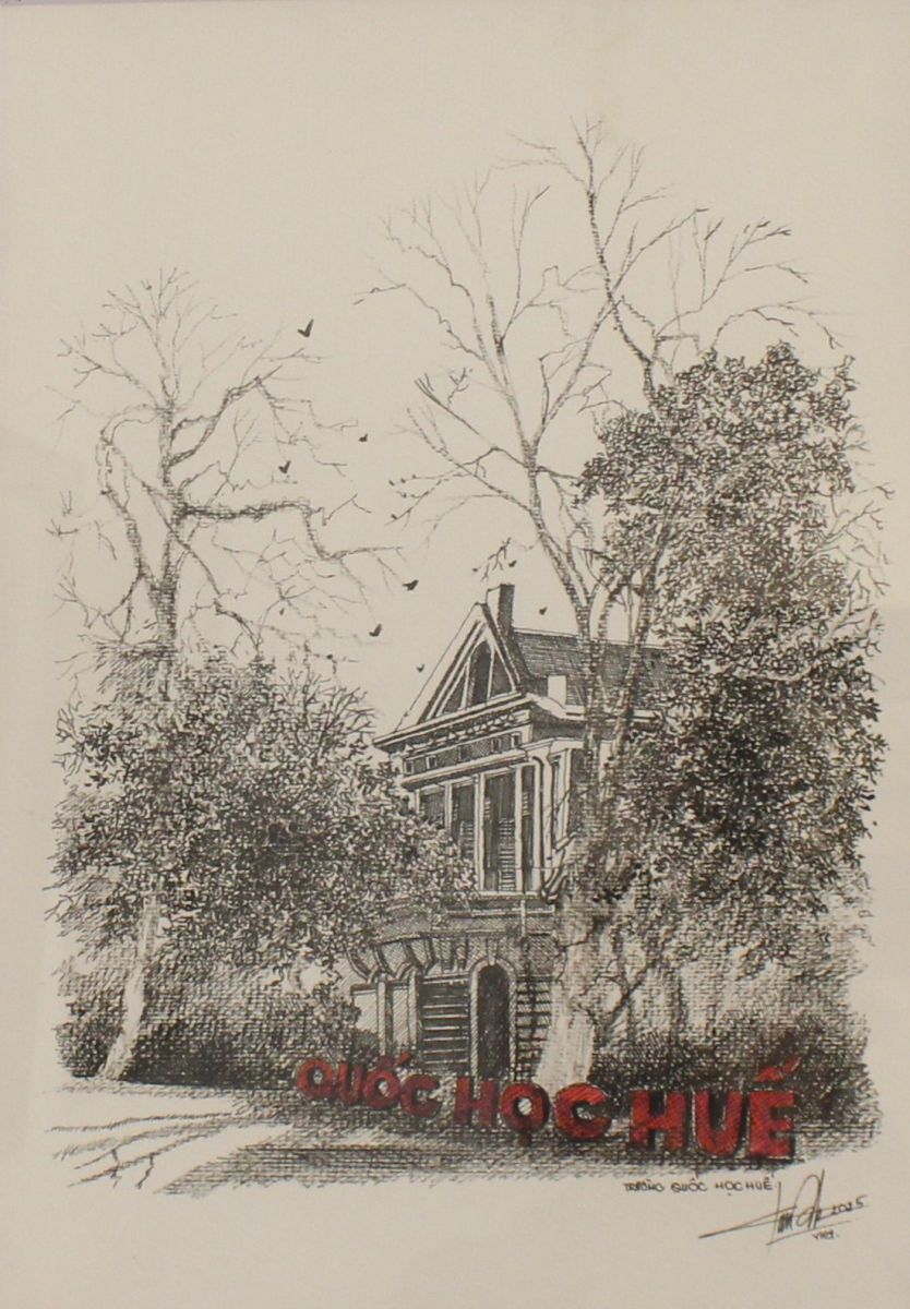 Trường Quốc Học Huế - ký họa bút sắt - Họa sĩ Đinh Thế Việt