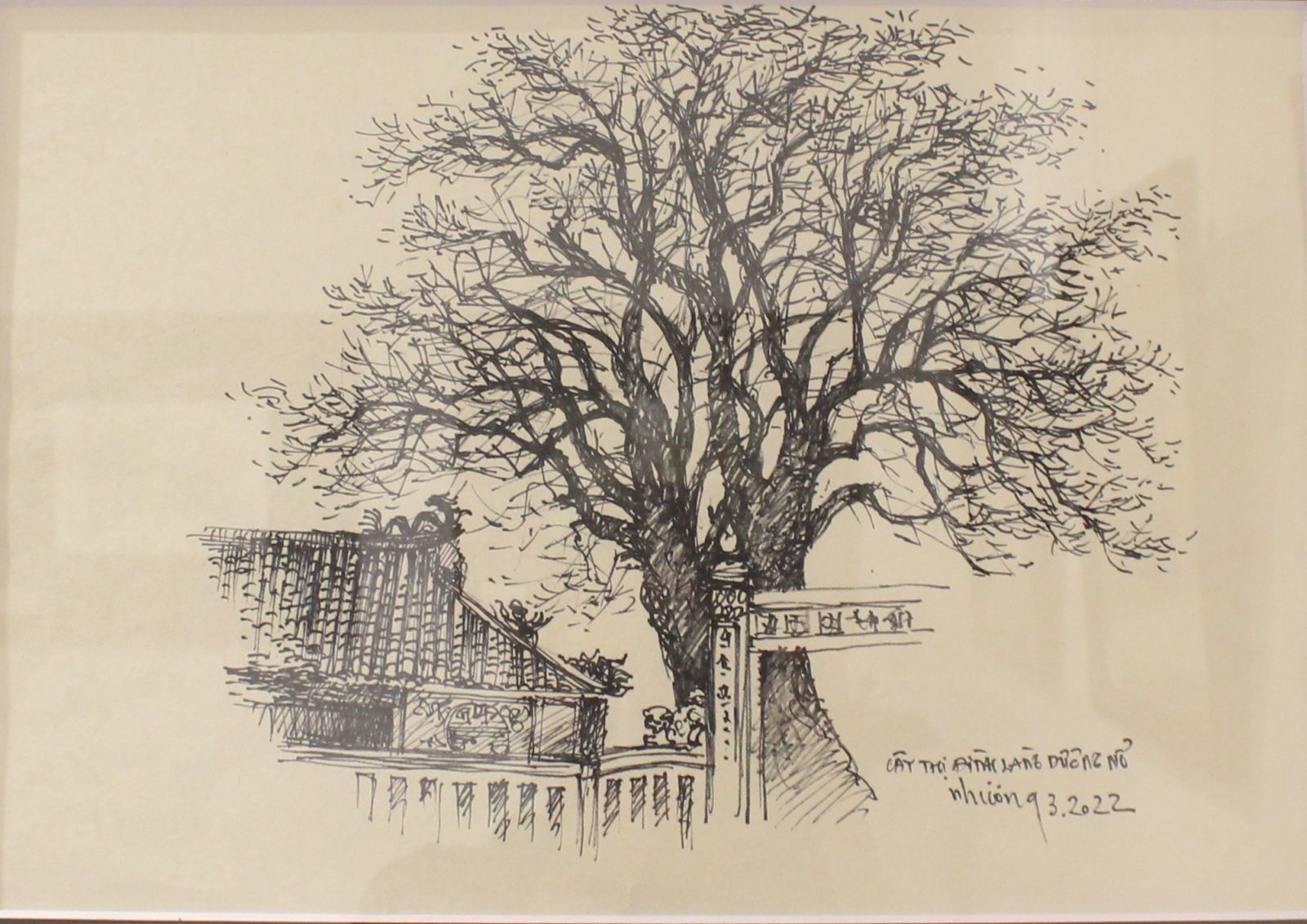 Cây thị ở đình làng Dương Nỗ - ký họa bút sắt - Họa sĩ Lê Văn Nhường