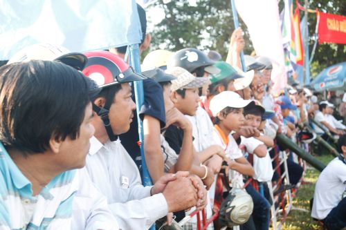 Đông đảo công chúng đứng chật cứng hai bên bờ Sông Hương để cổ vũ cho các đội đua