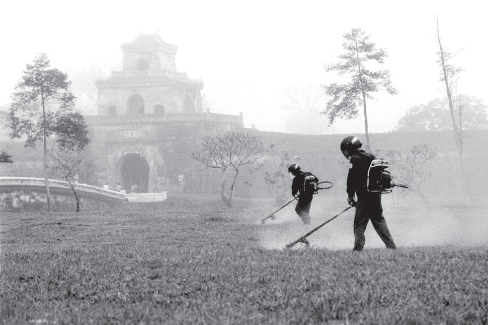 Tác giả HNS chụp hai người công nhân Trung tâm Công viên cây xanh Huế đang cắt cỏ bằng máy cắt cá nhân trước kinh thành Huế. Do đặc trưng nghề nghiệp họ phải đội mũ có kính bảo hiểm trùm kín mặt. Họ làm việc trong môi trường nắng nóng, bức bối, khó chịu nhưng tư thế miệt mài với công việc cho thấy tinh thần trách nhiệm vì đang làm đẹp cho môi trường cây xanh của Huế. Tác giả không chỉ mô tả đơn thuần công việc dọn cỏ mà còn gởi vào đó tình cảm và sự ngợi ca những con người lao động cần cù cho một thành phố xanh-sạch-đẹp. Tiếc thay, giám khảo không hiểu biết đặc trưng nghề nghiệp, không hình dung những nguy cơ xảy ra tai nạn cho công nhân cắt cỏ, lại lớn tiếng phê phán tác giả là giả tạo, bố trí dàn dựng không hợp lý. Sao cắt cỏ lại đội mũ phi công làm gì? Thế là bức ảnh tốt lại bị loại khỏi cuộc chơi một cách oan uổng. Không ai bảo vệ được cho tác giả vì quyết định của ban giám khảo là quyết định không thay đổi được. Tôi lại nghĩ giá như chỉ một lần thôi các giám khảo có dịp xem cảnh cắt cỏ, quan tâm tìm hiểu một chút “cắt cỏ như thế nào?” hoặc có thêm một phút suy nghĩ, hình dung lại hoạt động cắt cỏ bằng máy cầm tay thì không chừng bức ảnh của HNS có khi vào giải cao. Một lần nữa lỗi ở người thẩm định thiếu vốn sống - cái vốn sống đơn giản mà ai cũng có thể tích lũy khi đi ngang qua các công viên trong thành phố và xem cảnh cắt cỏ bình thường. Người thẩm định ảnh còn thiếu cả sự khiêm tốn và rất chủ quan.