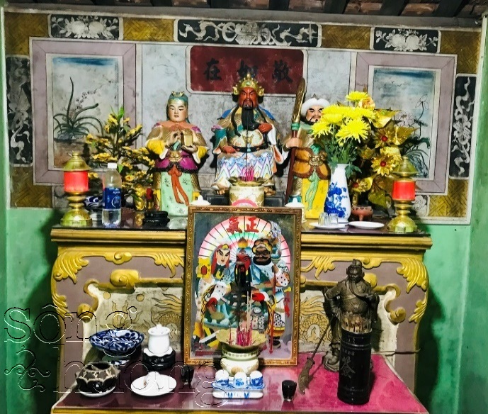 | Ban thờ Quan Thánh tại làng Dương Nỗ (trên) và làng Thanh Phước (dưới) |