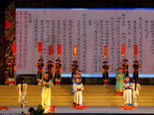 Tối ngày 28/4, Văn Hiến Kinh Kỳ - chương trình nghệ thuật mới lạ của Festival Huế đã được trình diễn trước hàng nghìn khán giả có mặt tại Điện Cần Chánh, Đại Nội Huế.