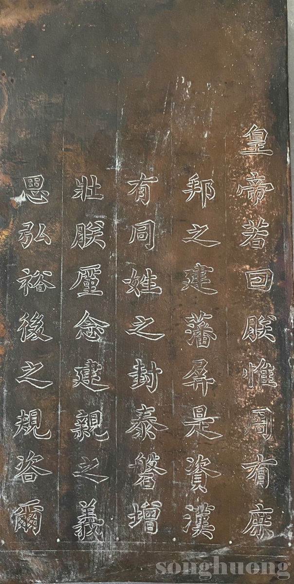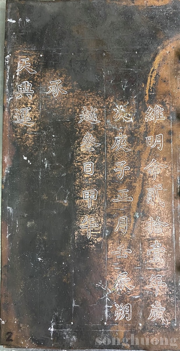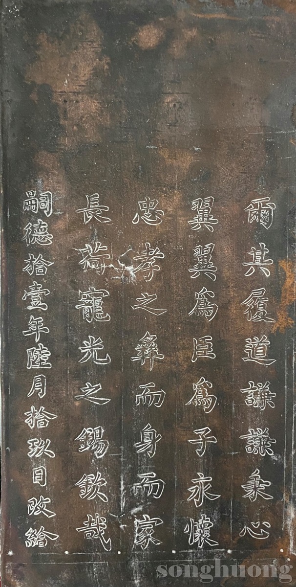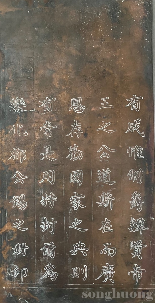 | Bản đồng sách ban phong cho Lạc Hóa quận công Miên Vũ - Ảnh do ông Bảo Tiến - Phòng Lạc Hóa quận công cung cấp |
