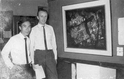 | Đinh Cường và Bác sĩ Erich Wulff. Bác sĩ Erich Wulff mua bức tranh Trăng qua vùng động đất trong Triển lãm tranh Đinh Cường tại Huế năm 1966 |