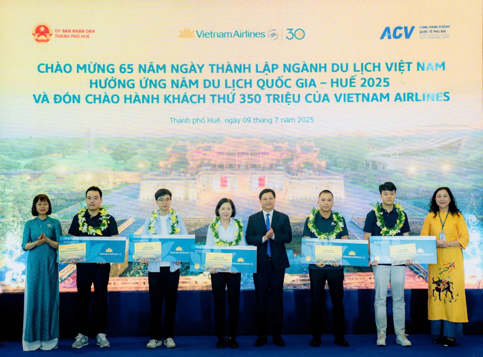 Tại buổi lễ, hành khách thứ 350 triệu được tặng thẻ Bông Sen Vàng hạng Bạch Kim, 02 vé khứ hồi nội địa hạng Thương gia và quà lưu niệm. Mười hành khách may mắn thứ 349.999.995 đến 350.000.005 nhận vé khứ hồi nội địa hạng Phổ thông, toàn bộ hành khách trên chuyến bay được tặng quà mang hình ảnh thương hiệu của Vietnam Airlines và mang đậm bản sắc Huế như lời chào đón nồng hậu từ Cố đô Huế…