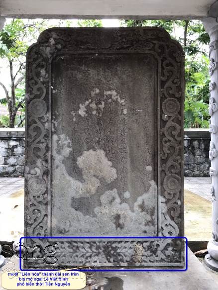 Đối chiếu với các tư liệu bia mộ hiện tồn, chúng tôi thấy rằng motif hoa sen dạng “liên hóa” ở chân bia mộ ngài Lê Viết Sinh là kiểu thức đặc trưng có từ thời chúa Nguyễn và kéo dài đến khoảng đầu triều vua Gia Long.