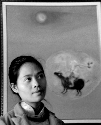 | Một cô gái bên bức tranh họa sĩ Bứa |