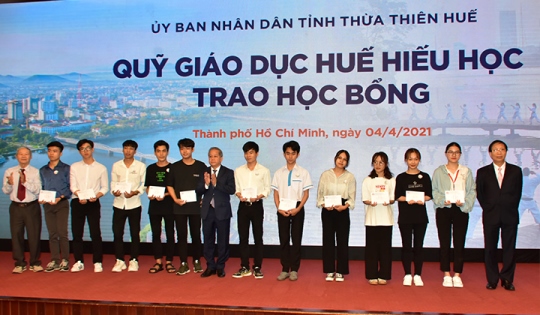Tại buổi gặp mặt, Quỹ giáo dục Huế hiếu học đã trao 11 suất học bổng cho các cháu là con em người Huế có hoàn cảnh khó khăn, học giỏi đang theo học đại học tại Thành phố Hồ Chí Minh.