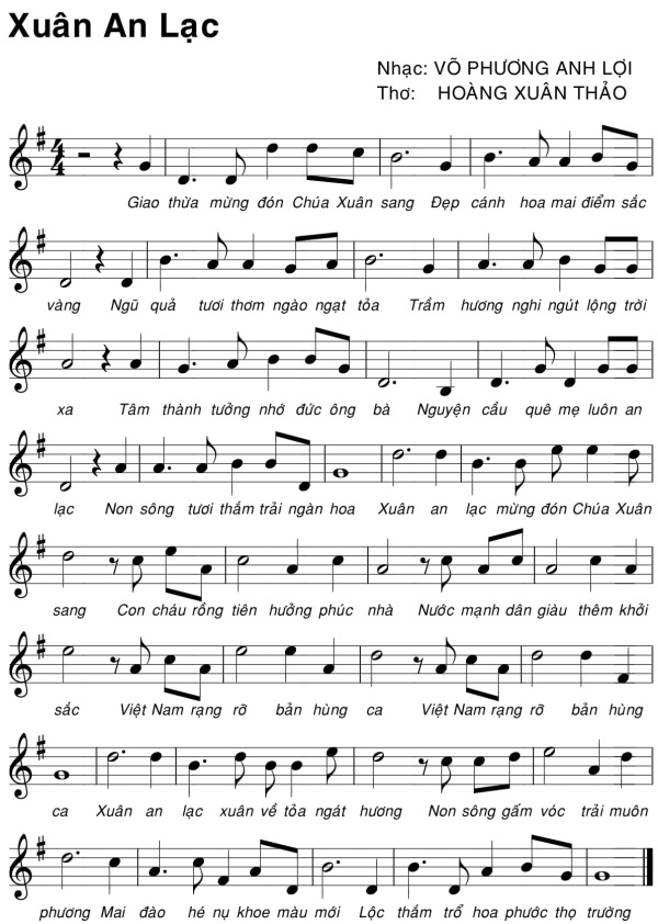 Nhạc: VÕ PHƯƠNG ANH LỢI Lời thơ: HOÀNG XUÂN THẢO