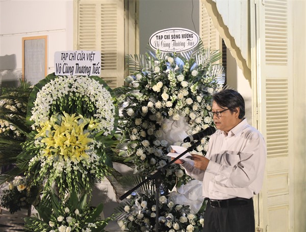Ông Nguyễn Văn Phương, Phó Bí thư tỉnh ủy - Chủ tịch UBND tỉnh, ông Nguyễn Thanh Bình – Ủy viên Ban Thường vụ Tỉnh ủy - Phó Chủ tịch UBND tỉnh, ông Phan Thiên Định - Ủy viên Ban Thường vụ Tỉnh ủy - Bí thư Thành ủy Huế, đại diện lãnh đạo Ủy ban Nhân dân Thành phố Huế, đại diện lãnh đạo Sở Giáo dục và Đào tạo, Liên hiệp các Hội VHNT tỉnh Quảng Bình cùng đông đảo bạn bè đã đến thắp hương tưởng nhớ.