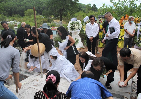 | Người thân, bạn bè tiễn đưa nhà văn Hoàng Phủ Ngọc Tường và nhà thơ Lâm Thị Mỹ Dạ về an nghỉ tại Nghĩa trang phía Bắc Thành phố Huế. |