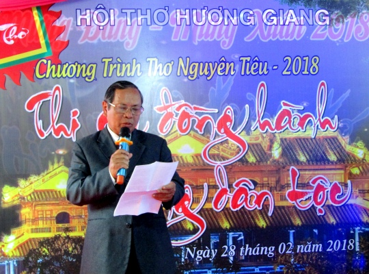 | Ông Phan Công Tuyên - Chủ tịch Hội thơ Hương Giang phát biểu khai mạc |
