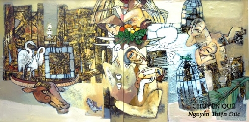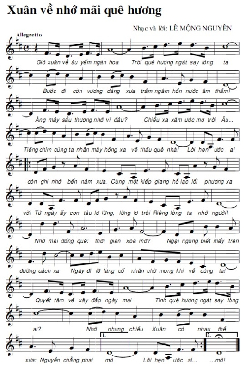 Gió xuân về âu yếm ngàn hoa/ Trời quê hương ngát say lòng ta/ Bước đi còn vương dáng xưa/ trầm ngâm hồn nước âm thầm!...