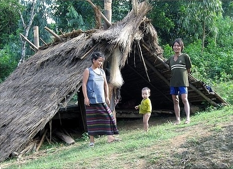 Thế rồi Ăm Hươn chống gối đứng dậy, lảo đảo tiến về vách trái nhà sàn đan dày bằng tre ca lay. Nơi đó có cái ca dóc như một búp măng ám khói, đang treo rủ ngược xuống, Ăm Hươn tiến tới gần, dướn lên, với tay lấy ca dóc nhưng không được. Lại dướn lên.. lại không được.