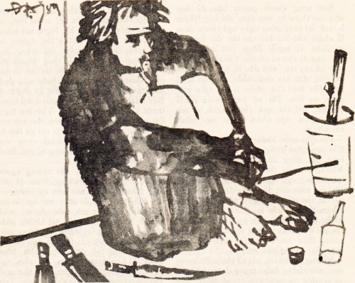 Cây lá héo rũ. Hơi nóng bốc rung rinh trên một mỏm lá xám. Cả hoang đảo say nắng ngất ngư tới tận khi mặt trời đỏ nẫu sắp rụng xuống gốc biển.