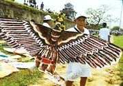 THANH TÙNGNhững dịp lễ hội, những chiều hè gió lộng và đẹp trời, trên bầu trời cố đô Huế rực rỡ đủ sắc màu của những cánh diều mượt mà trong hình dáng các loài chim, thú: long, lân, ly, phụng, công, bướm, quạ. Đặc sắc nhất thì diều đại bàng cứu công chua, diều bướm đốt pháo, diều Tôn Ngộ Không...