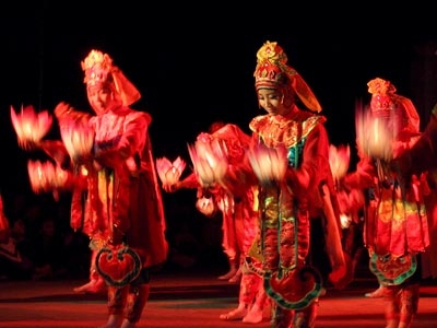 NGUYỄN NGHĨA NGUYÊNChúng tôi xem qua vô tuyến truyền hình nên nhìn đi mà không được nhìn lại, ấy thế mà tiết mục đã để lại ở chúng tôi một ấn tượng sâu sắc.Các nghệ nhân như những nàng tiên hai bàn tay cặp hoa đăng uốn lượn vẽ ra một dải Ngân Hà trong một ánh sáng và tiếng nhạc cung kính, trang nghiệm gợi ra một cảm giác xa xưa của một thời vang bóng.