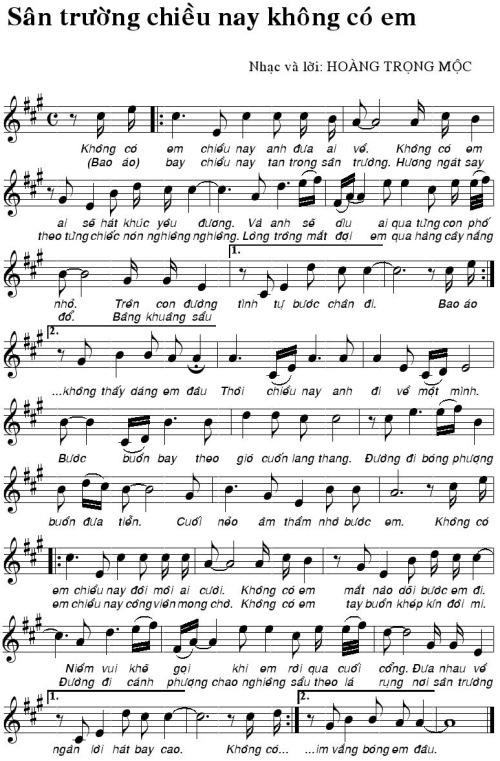 Nhạc và lời: HOÀNG TRỌNG MỘC