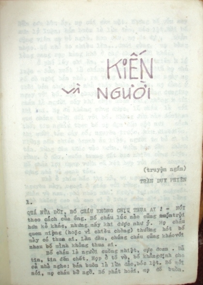 1. Từ thập niên 90 của thế kỉ XX, nhà văn Trần Duy Phiên đã sáng tác nhiều tác phẩm mang đậm tư tưởng sinh thái mà tiêu biểu là bộ ba truyện ngắn viết về côn trùng Kiến và người (KVN), Mối và người (MVN), Nhện và người (NVN).