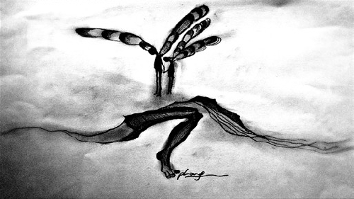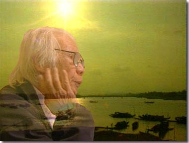 Bước đi của ông nghiêng bên này, ngả bên kia, bóng nhảy qua nhảy lại thành hai chiếc bóng của một người.