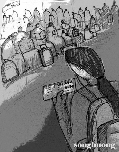 Tin thông báo, chuyến bay vê- nờ-hai-năm-tám của hãng hàng không... dự kiến khởi hành vào mười sáu giờ ba mươi phút sẽ khởi hành vào mười tám giờ năm lăm phút do thay đổi kế hoạch bay...”.
