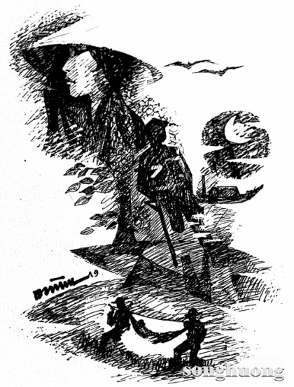 Duy chợt mở bừng mắt vì tiếng đập lùng bùng của mấy tấm phên liếp. Anh nhìn ra ngoài. Trời xám đục một màu chì, chẳng biết còn sáng sớm hay đã xế chiều.