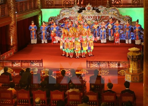 Trong chuyến thăm Việt Nam, ngày 4/3 sau khi đến Huế, Nhà vua và Hoàng hậu Nhật Bản đã đến thăm Đại Nội và xem biểu diễn Nhã nhạc cung đình Huế tại Nhà hát Duyệt Thị Đường.