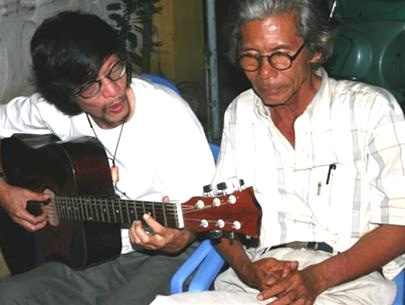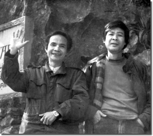 LÊ MỸ Ý ghi (Trích)Khi tôi đến, hai ông đang ngồi chiếu rượu trong căn hộ chung cư sáu tầng cao ngất ngưởng. Căn phòng như được ghép bằng sách. Trên tường, ảnh Văn Cao đang nâng ly và bức sơn dầu "Tuổi Đá Buồn" Bửu Chỉ vẽ Trịnh Công Sơn dựa vào cây đàn ghita ngóng nhìn vô định. Ngẫu nhiên tôi trở thành người hầu rượu, nói đế cho cuộc đối thoại ngẫu nhiên của hai ông...