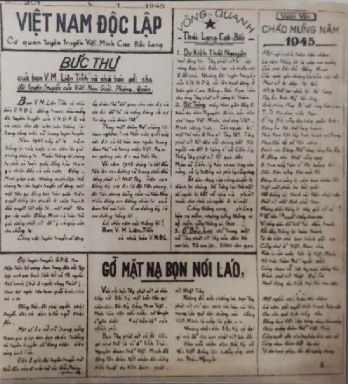 Tại Khu di tích Quốc gia đặc biệt dưới chân núi Slam Cao, thuộc địa bàn hai xã Tam Kim và Hoa Thám, huyện Nguyên Bình, tỉnh Cao Bằng, nơi 80 năm về trước, vào chiều ngày 22 tháng 12 năm 1944, Đội Việt Nam Tuyên truyền Giải phóng quân ra đời, tiền thân của Quân đội Nhân dân Việt Nam ngày nay, hiện trưng bày rất nhiều tư liệu hiện vật quý hiếm về cách mạng kháng chiến, trong đó có những số báo của tờ Việt Nam Độc Lập cơ quan của Mặt trận Việt Minh.