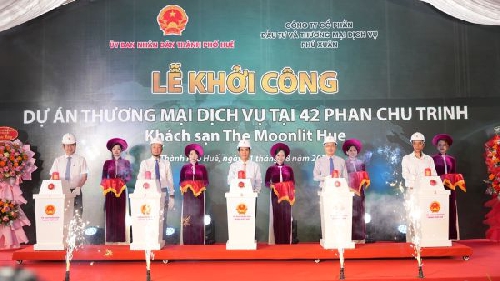 Sáng 31/8, Công ty Cổ phần Đầu tư và Thương mại dịch vụ Phú Xuân phối hợp tổ chức lễ khởi công dự án thương mại dịch vụ 42 Phan Chu Trinh (Khách sạn The Moonlit Hue).
